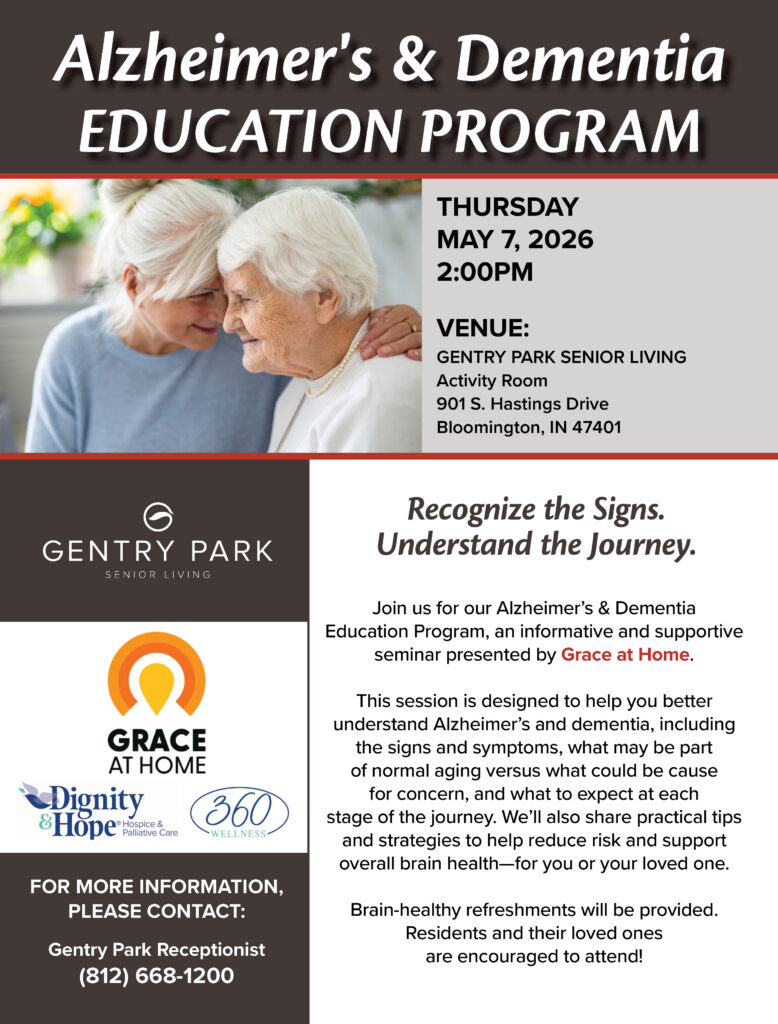 Alzheimer’s & Dementia Education Program at Gentry Park Senior Living May 2026